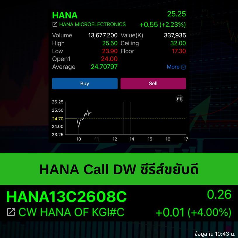 ดูตารางราคาได้ที่ https://www.thaiwarrant.com/dw/HANA13C2608C