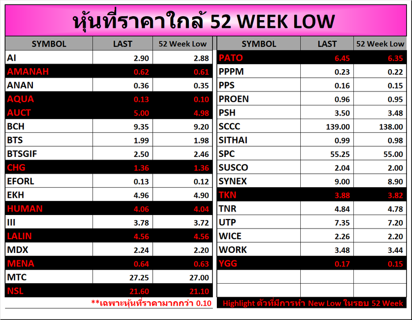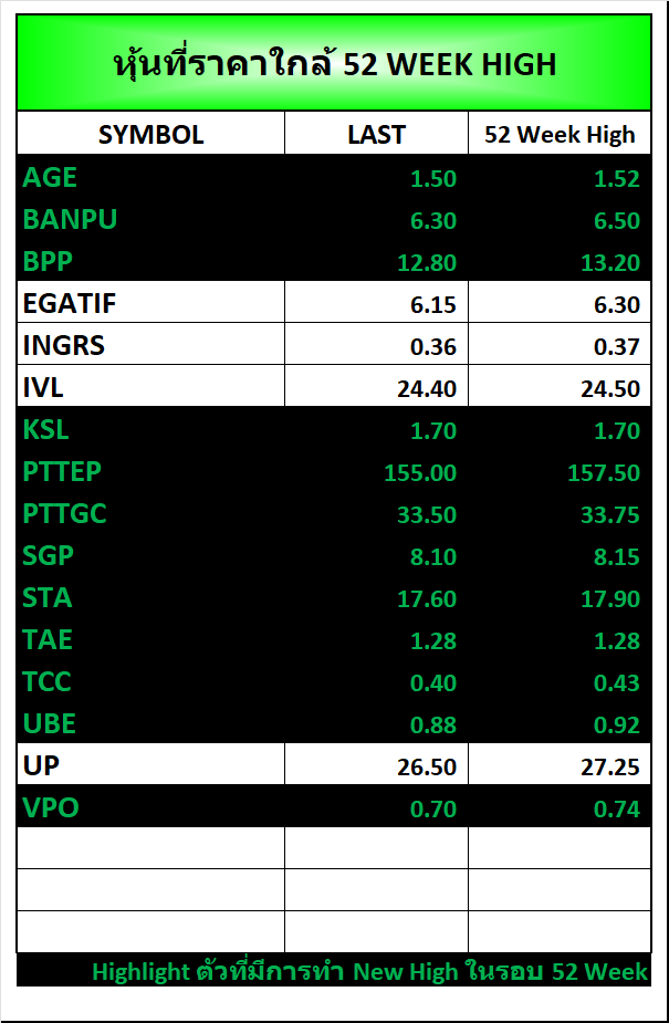 ⭐หุ้นที่ราคาใกล้ 52 Week 🟢High 🔴Low 📅23/03/2026