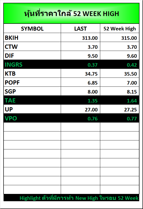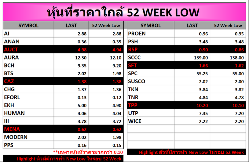 ⭐หุ้นที่ราคาใกล้ 52 Week 🟢High 🔴Low 📅24/03/2026