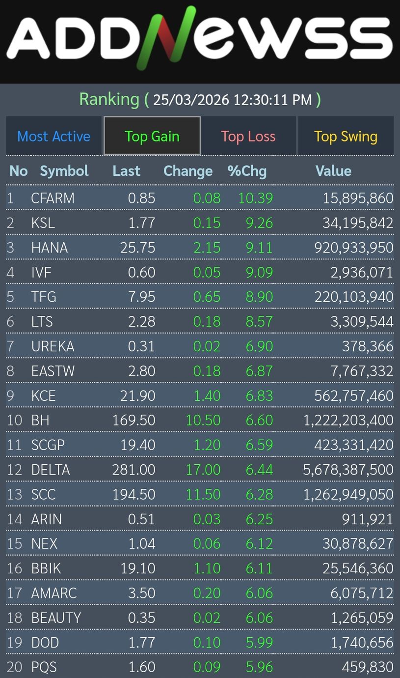 ⬆️สูงสุดที่ 1,446.95 / +36.56 จุด