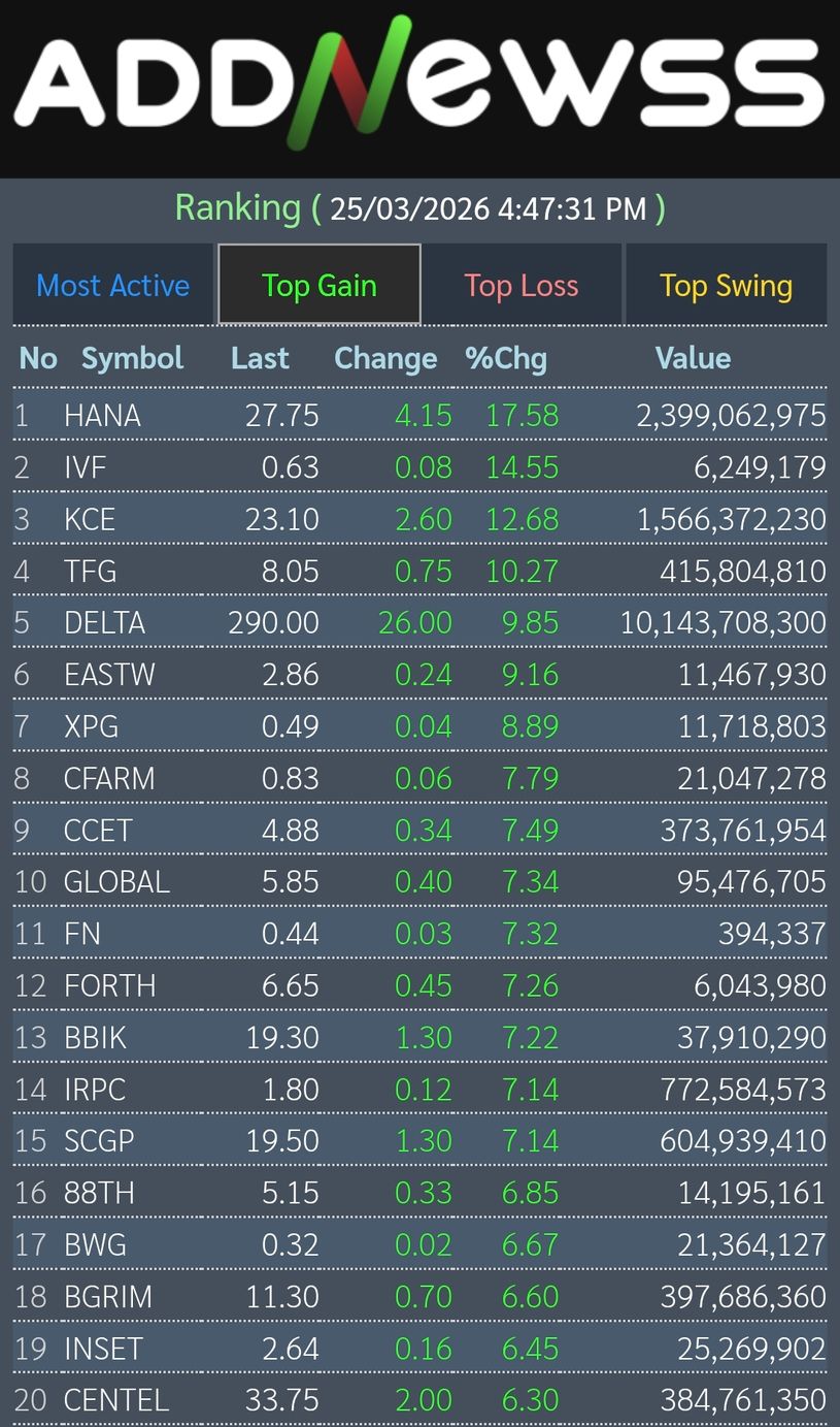📊เย็นวันนี้ดัชนีตลาดหุ้นไทยปิดที่ 1,457.91 เพิ่มขึ้น +47.52 จุด หรือ +3.37%
