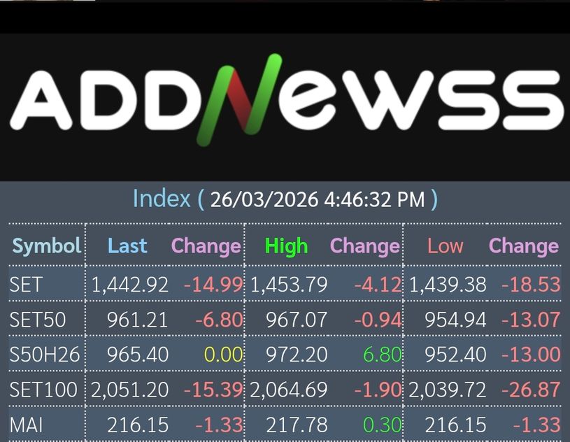 📊เย็นวันนี้ดัชนีตลาดหุ้นไทยปิดที่ 1,442.92 ลดลง -14.99 จุด หรือ -1.03%