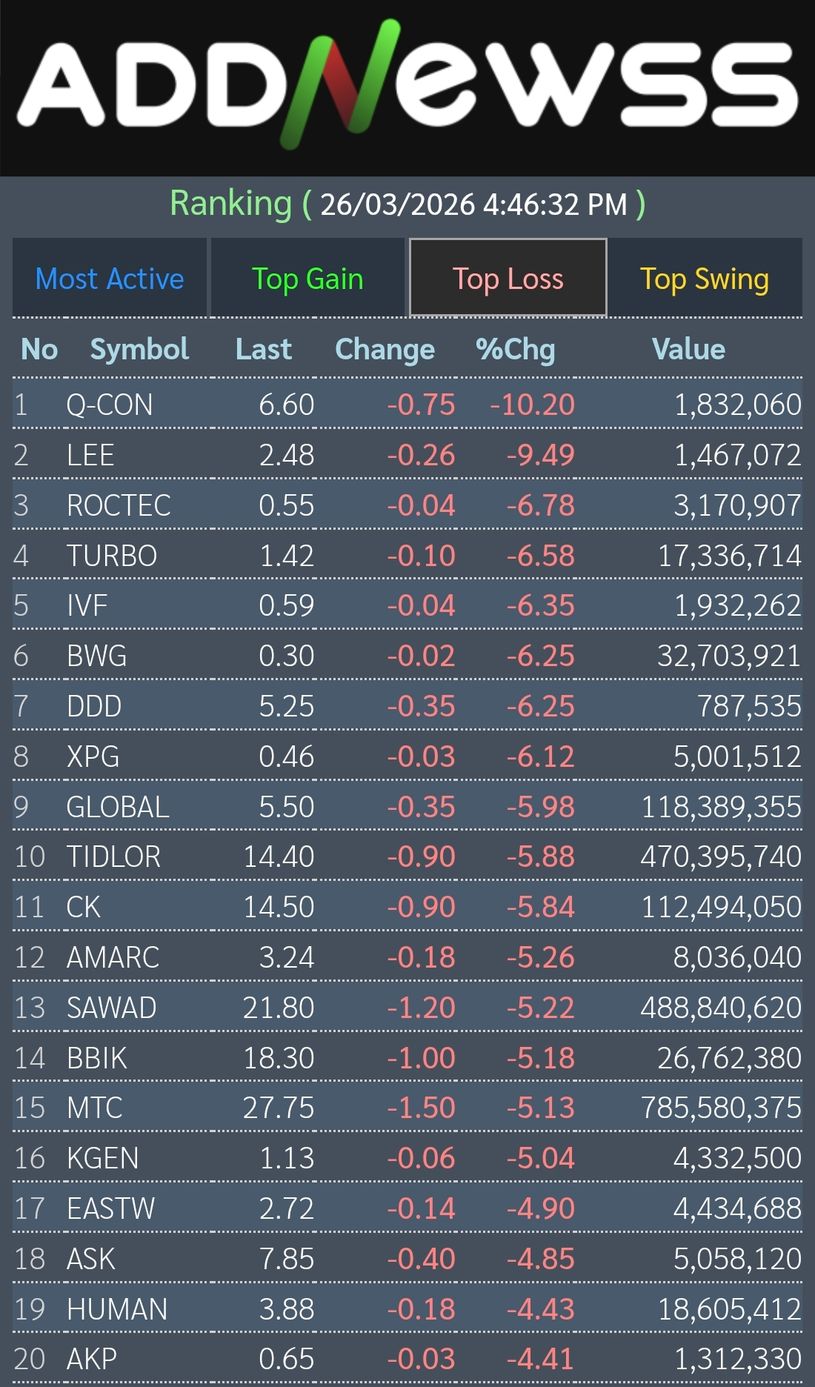 ⬇️ต่ำสุดที่ 1,439.38 / -18.53 จุด