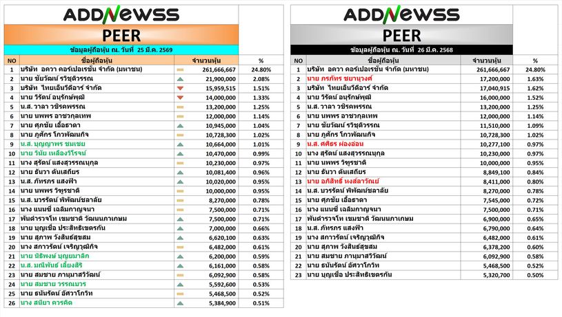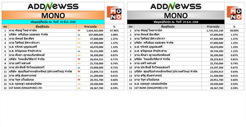 📊 ผู้ถือหุ้นใหญ่มีการเปลี่ยนแปลง