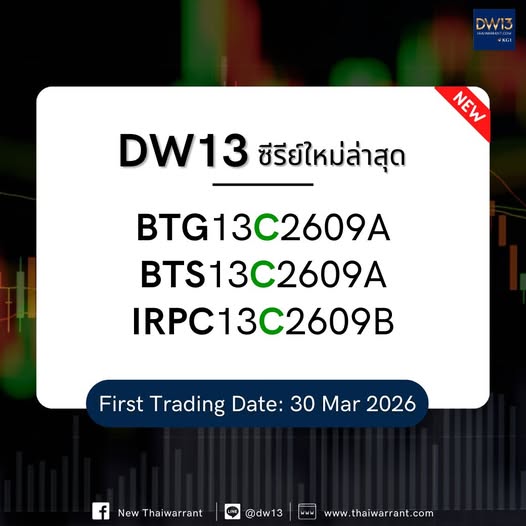 DW13 ออก #BTG13C2609A ซีรีส์ใหม่ . เริ่มเทรดวันจันทร์ (30 มี.ค. 69) https://www.thaiwarrant.com/kgi-dw/newdw