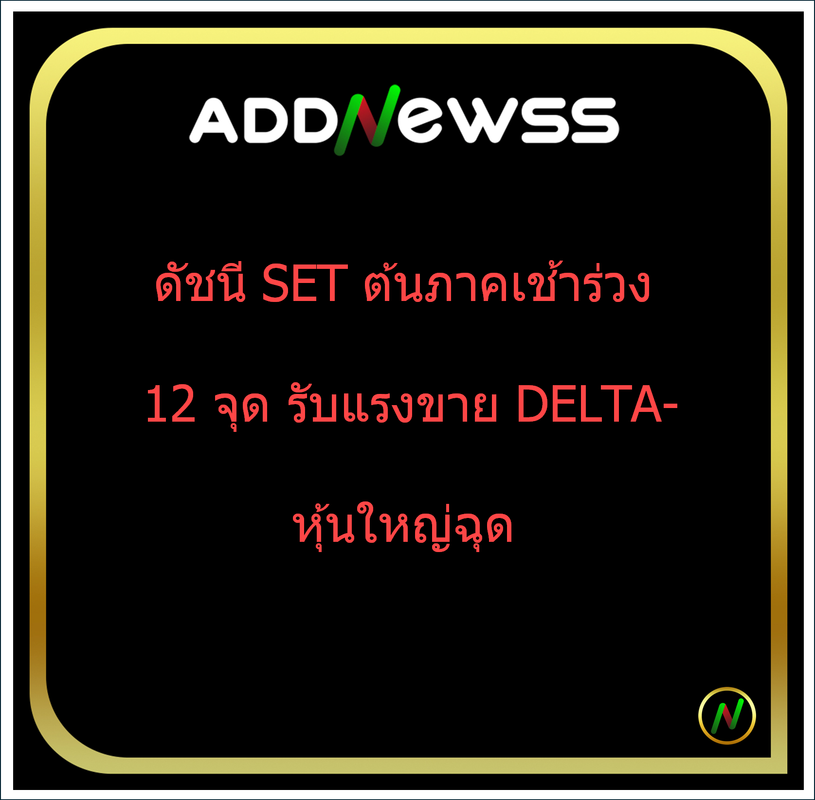 *ดัชนี SET ต้นภาคเช้าร่วง 12 จุด รับแรงขาย DELTA-หุ้นใหญ่ฉุด