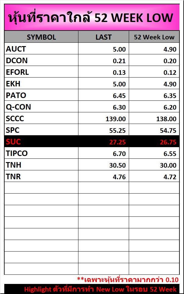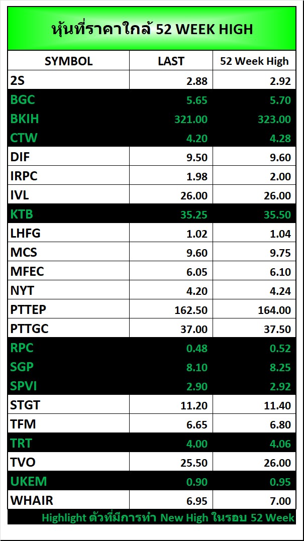 ⭐หุ้นที่ราคาใกล้ 52 Week 🟢High 🔴Low 📅31/03/2026
