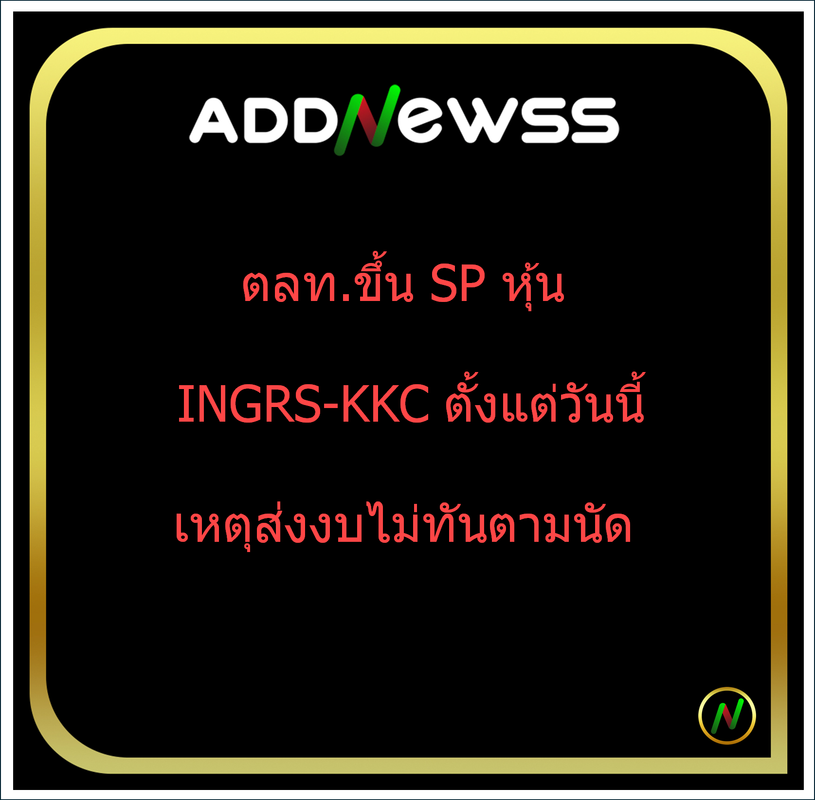 สำนักข่าวอินโฟเควสท์ (1 เม.ย. 2569)--ตลาดหลักทรัพย์แห่งประเทศไทย (ตลท.) ขึ้นเครื่องหมาย SP หลักทรัพย์ของ บมจ.อิงเกรส อินดัสเตรียล (ไทยแลนด์) [INGRS] และ บมจ.กุลธรเคอร์บี้ [KKC] ตั้งแต่วันที่ 1 เม.ย. 2569 เนื่องจากบริษัทไม่สามารถส่งงบการเงินภายในระยะเวลาที่กำหนด