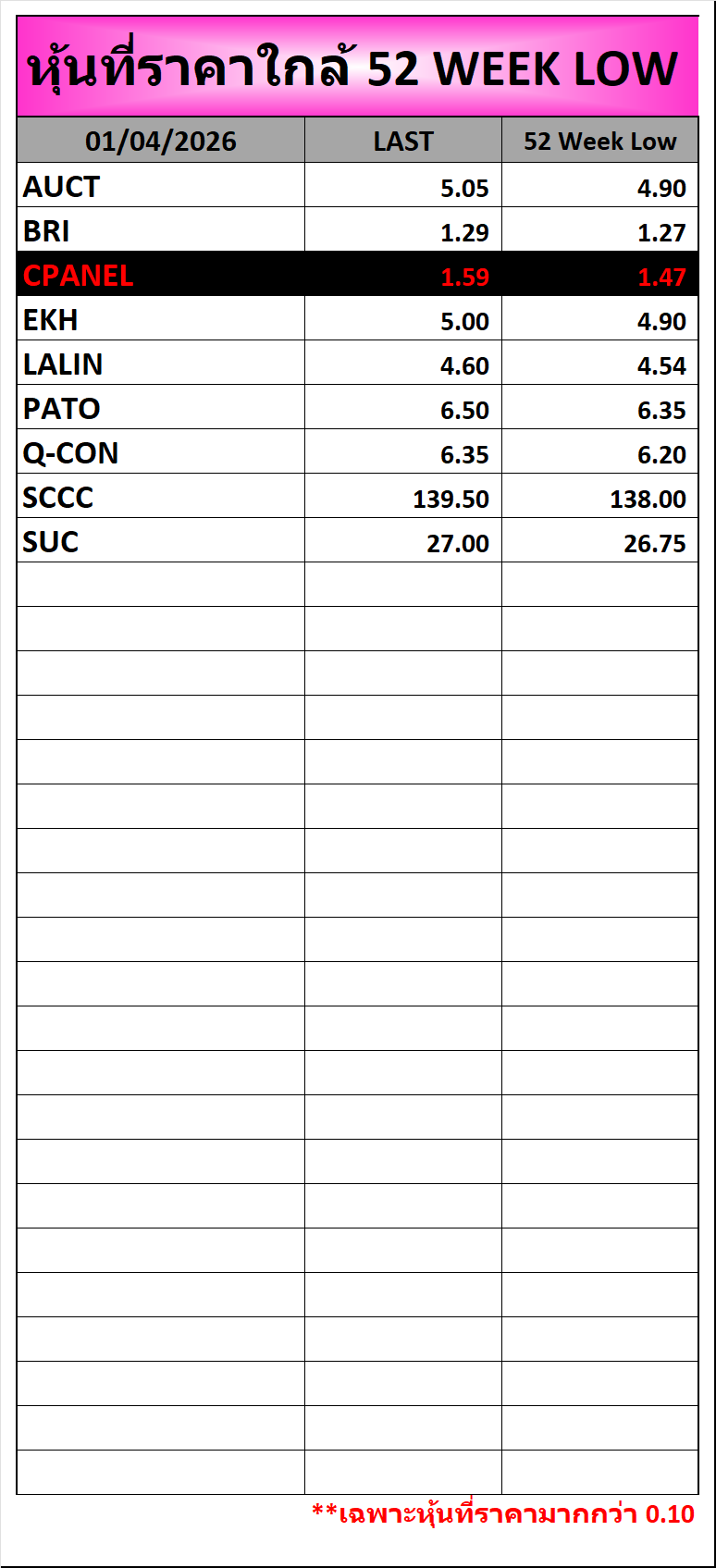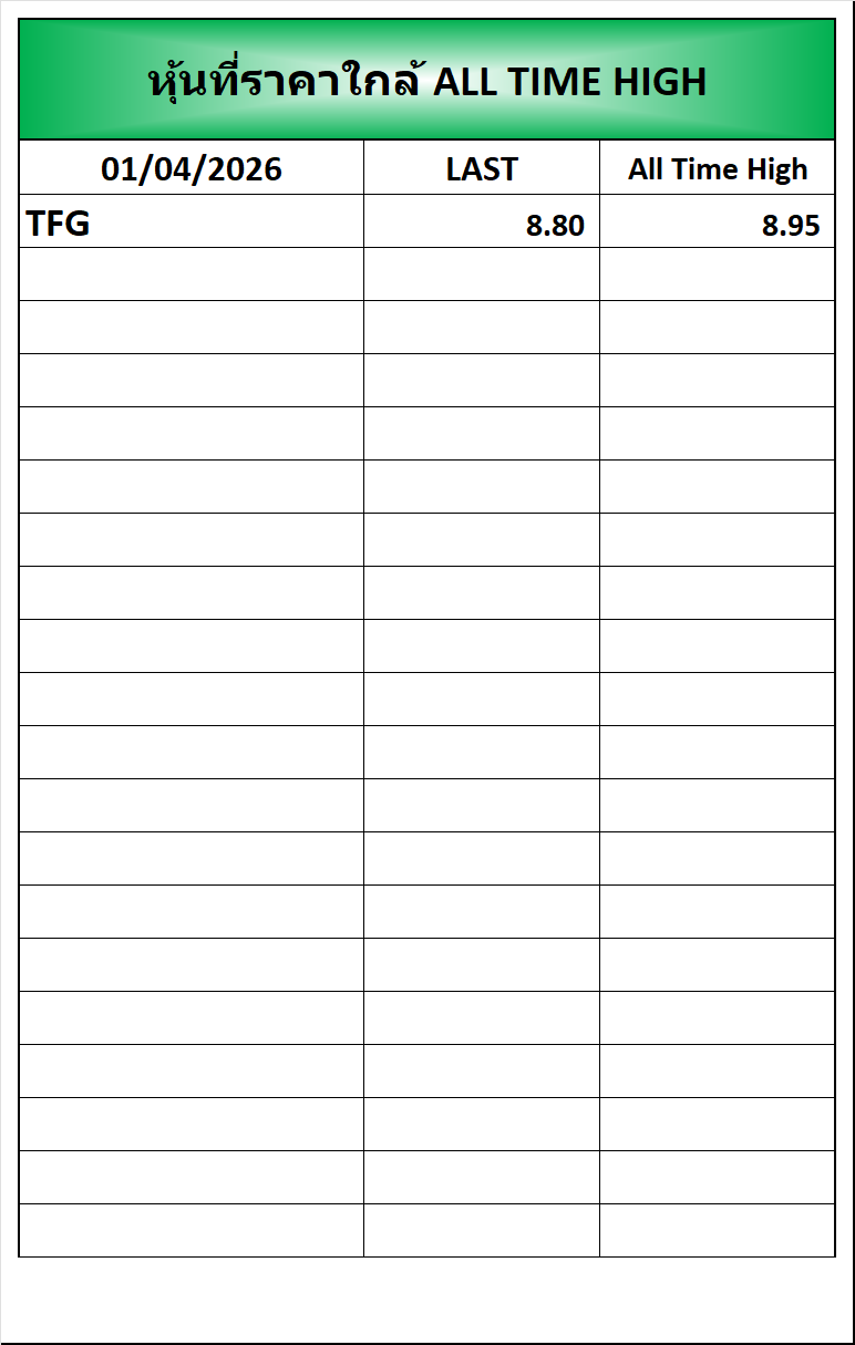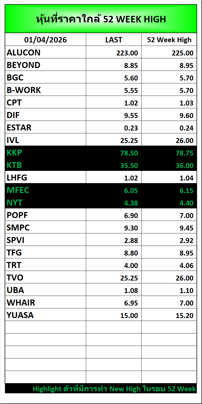 ⭐🔥หุ้นที่ราคาใกล้ ALL TIME 🟢High 🔴Low 📅01/04/2026