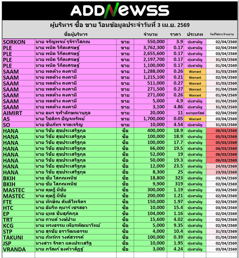 🔥🔥สรุปผู้บริหาร ซื้อ ขาย โอน