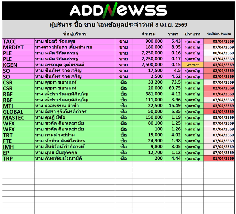 🔥🔥สรุปผู้บริหาร ซื้อ ขาย โอน