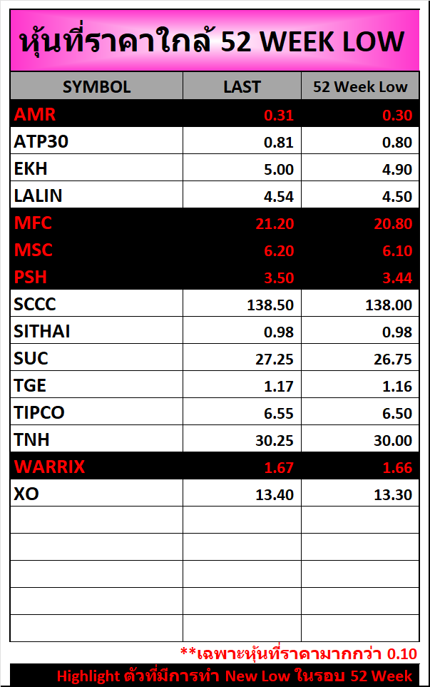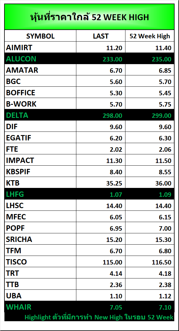 ⭐หุ้นที่ราคาใกล้ 52 Week 🟢High 🔴Low 📅09/04/2026