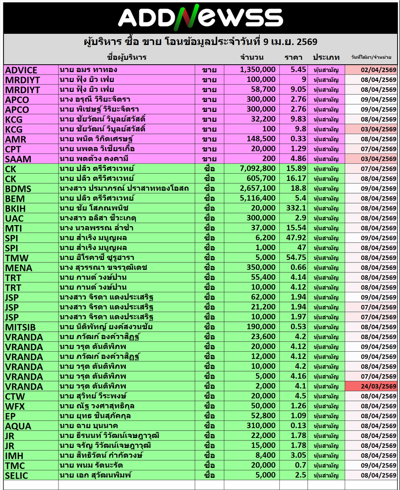 🔥🔥สรุปผู้บริหาร ซื้อ ขาย โอน