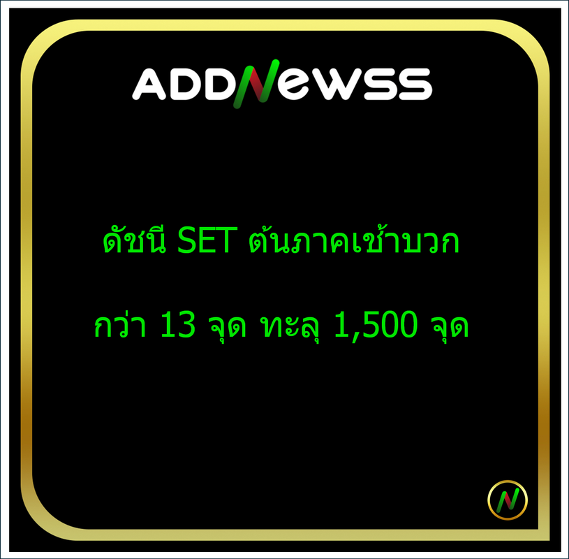 IQ > *ดัชนี SET ต้นภาคเช้าทะลุ 1,500 จุด ดีดขึ้นกว่า 13 จุด รับแรงซื้อหุ้นใหญ่หนุน