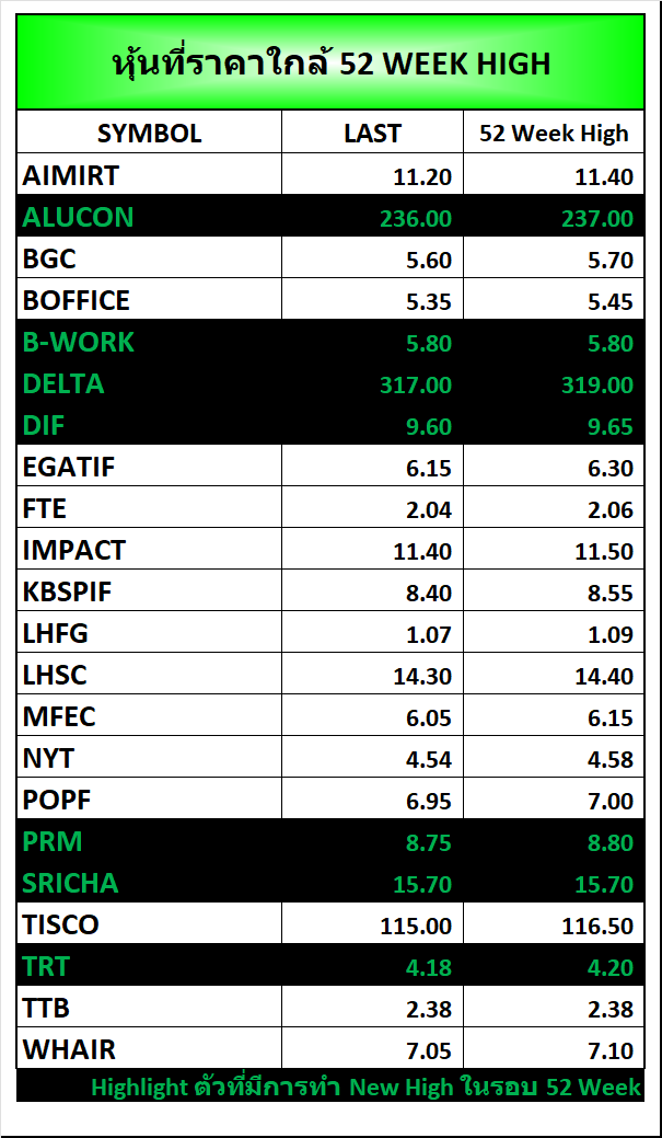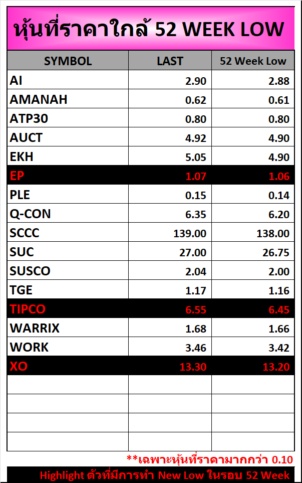 ⭐หุ้นที่ราคาใกล้ 52 Week 🟢High 🔴Low 📅10/04/2026