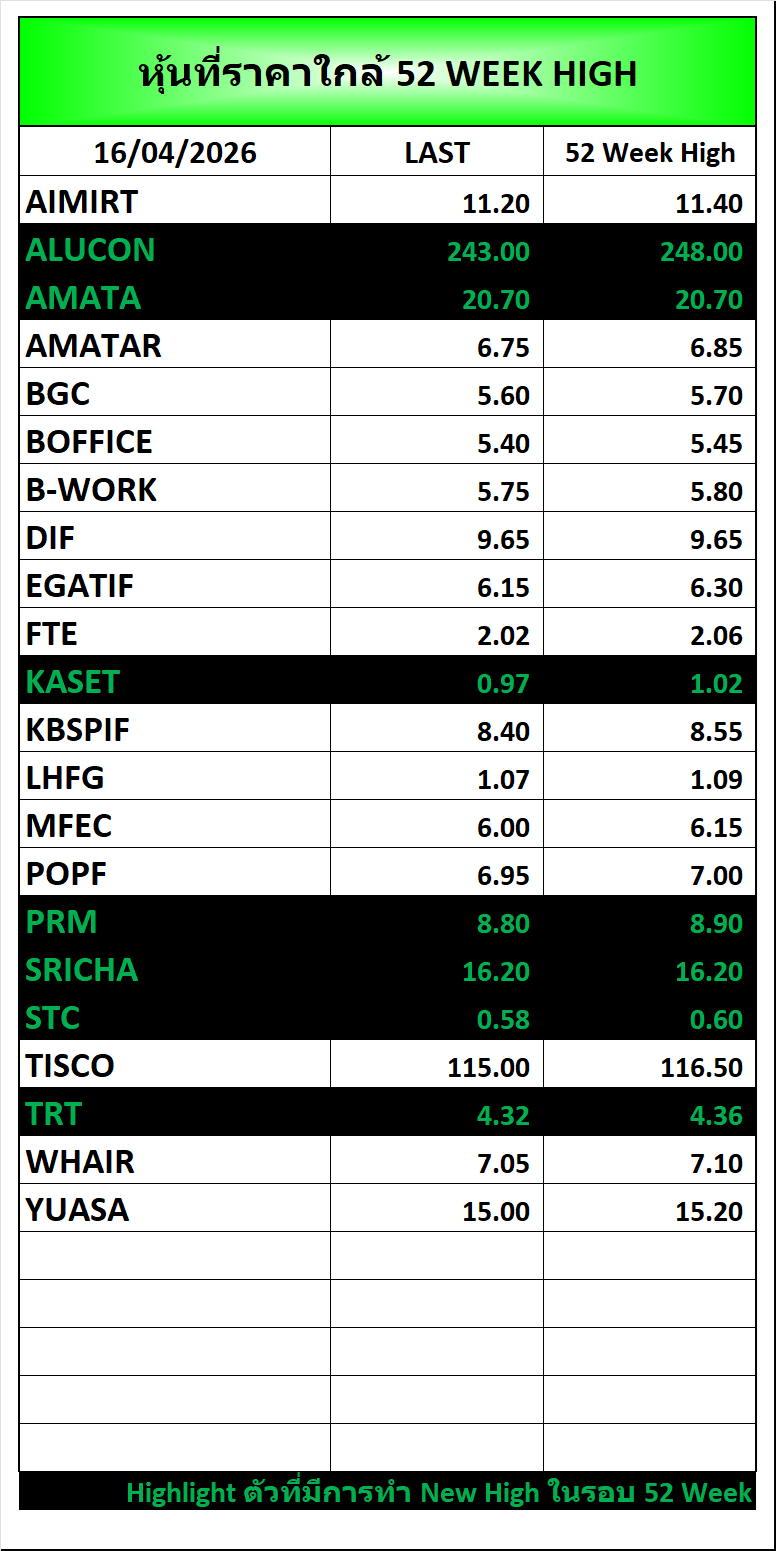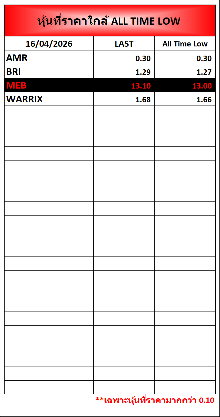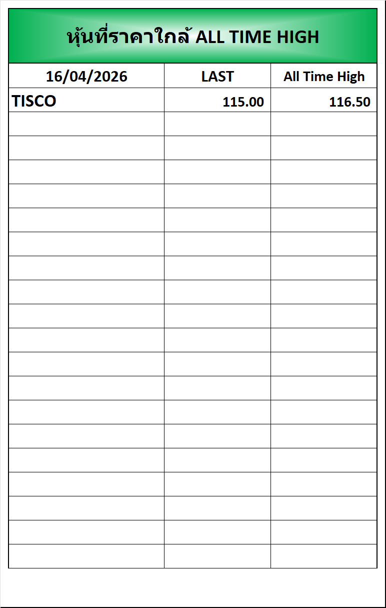 ⭐🔥หุ้นที่ราคาใกล้ ALL TIME 🟢High 🔴Low 📅16/04/2026