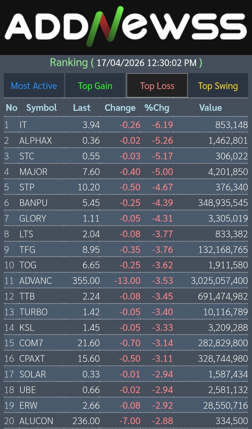 ⬇️ต่ำสุดที่ 1,472.58 / -17.15 จุด