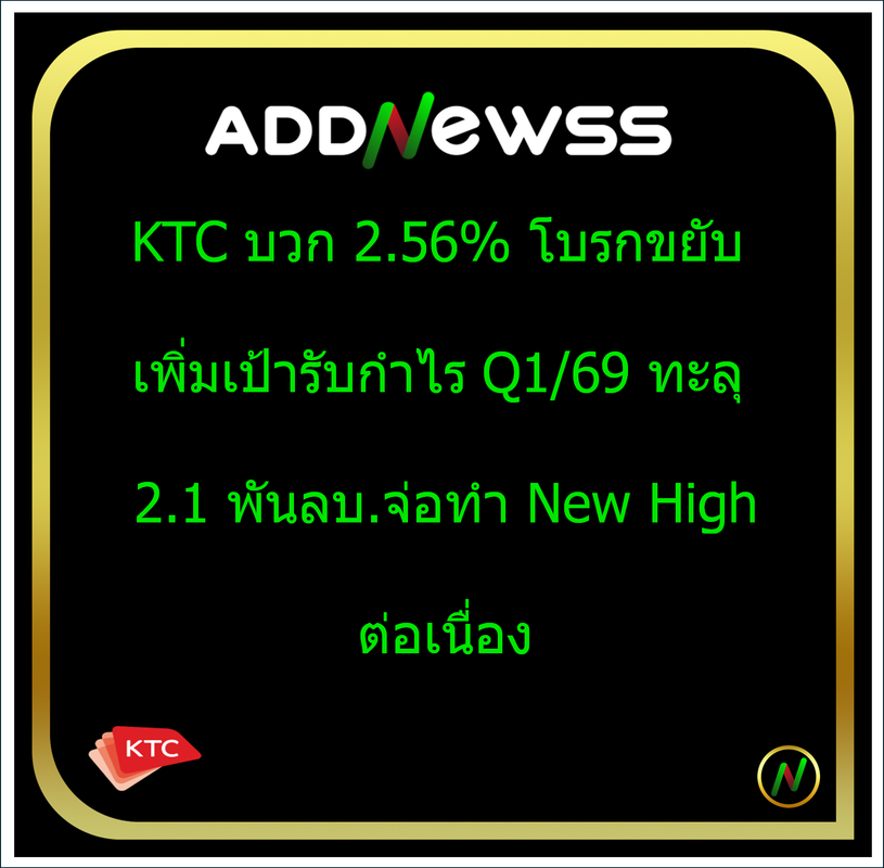 IQ > HILITE: KTC บวก 2.56% โบรกขยับเพิ่มเป้ารับกำไร Q1/69 ทะลุ 2.1 พันลบ.จ่อทำ New High ต่อเนื่อง