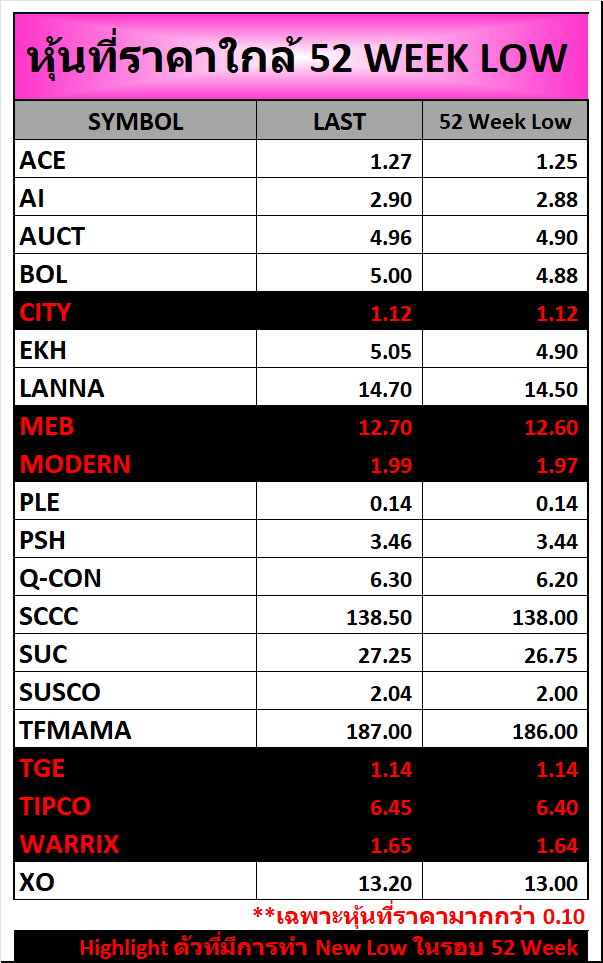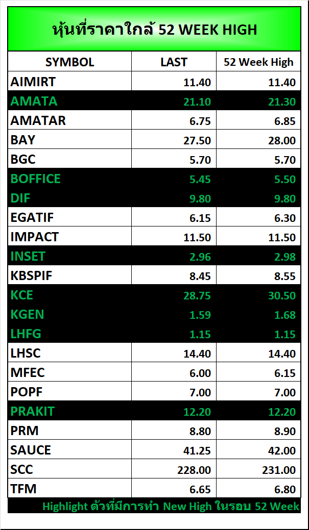 ⭐หุ้นที่ราคาใกล้ 52 Week 🟢High 🔴Low 📅21/04/2026