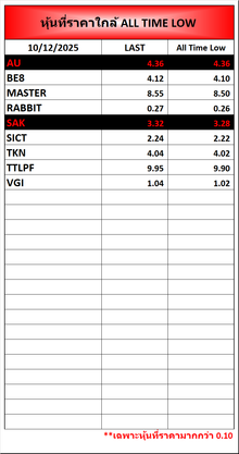 🔥 หุ้นที่ราคาบวก/ลบ มากกว่า 4 ช่องจากราคาปิดเมื่อวาน และปิดที่ 🟢High/🔴Low 🔍 https://addnewss.news/hl