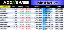 | Symbol | Last | Chg | %Chg | Hi | Low | Volume | Value | Date | Time | ☰ |