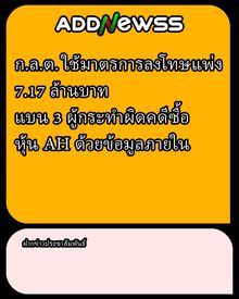 ก.ล.ต. ฟัน 3 รายใช้ข้อมูลวงใน ซื้อหุ้น AH ปรับ 7.1 ล. – สั่งแบนผู้บริหารสูงสุด 14 เดือน