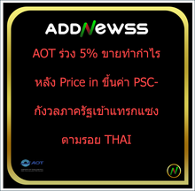 | AOT | 30/09/25 | 39.75 | (#KH) AOT ดันปรับใหญ่ค่า PSC รายได้เพิ่มปีละหมื่นล้าน |