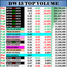 | Symbol | Last | Chg | %Chg | Hi | Low | Volume | Value | Date | Time | ☰ |