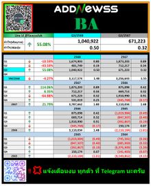| BA | 30/05/24 | 19.20 | (#KH) BA ผลงานไตรมาส 2 สดใส! จำนวนนักท่องเที่ยวพุ่ง 30% |
