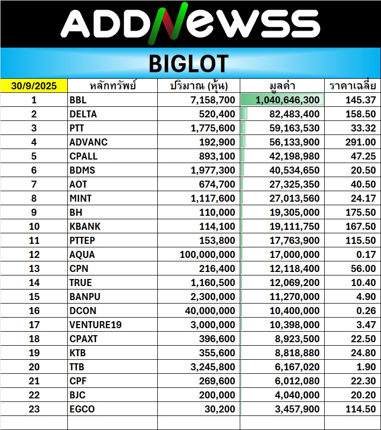 BBL | 18/09/25 | 148.00 | (#TH) BBL ปรับทัพสู้ยุคดิจิทัล ปั้นสินเชื่อโต 3% คุม NPL |
