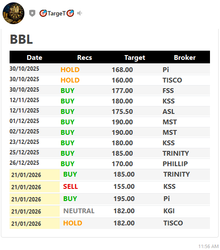 | BBL | 12/11/25 | 156.00 | (#TH) BBL นี้เศรษฐกิจปี69 ฟื้น จ่อขาย NPL เข้าปิดหนี้ไว |