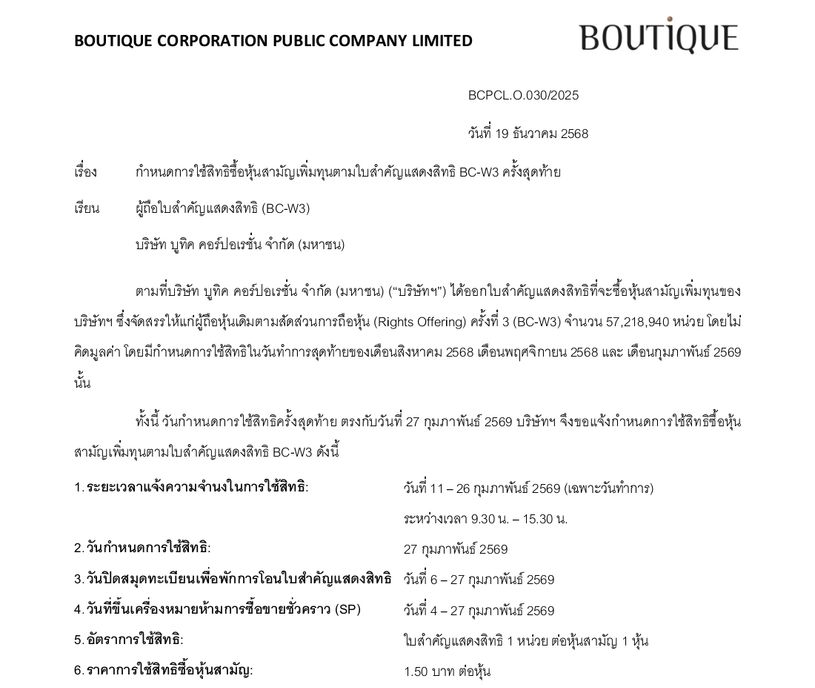 BC บริษัท บูทิค คอร์ปอเรชั่น จำกัด (มหาชน)