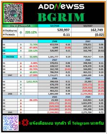 | BGRIM | 17/11/25 | 14.40 | (#TH) BGRIM กำไรเด้ง 219% จ่อ COD 558เมก โตต่อ |