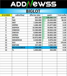 | BH | 12/12/25 | 165.50 | (#TH) BH เดินหน้าเจาะต่างชาติ ทุ่ม 4.3 พันล. เปิดรพ.ภูเก็ต |