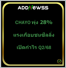 | CHAYO | 20/08/25 | 1.83 | (#KH) CHAYO งบ Q2 กำไรพุ่ง 22.46% ครึ่งปีแรกกำไรทะยาน 60.37% ทั้งปีโตตามแผน |
