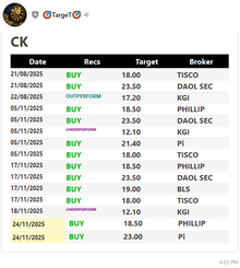 | CK | 14/11/24 | 18.10 | (#TH) CK สตอรี่แข็งแกร่ง ลุ้น Q3 ผลงานนิวไฮ |