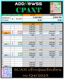 | CPAXT | 17/11/25 | 17.20 | (#TH) CPAXT เร่งต่อยอดสาขา ปั๊มพอร์ตพื้นที่เช่าทำเงิน |