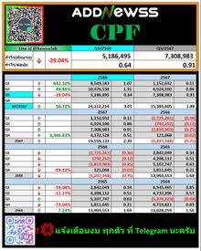 | CPF | 19/08/24 | 24.50 | (#TH) หุ้นเจ้าสัวซีพี กำไรโตสนั่น อัเป้า CPF TRUE |