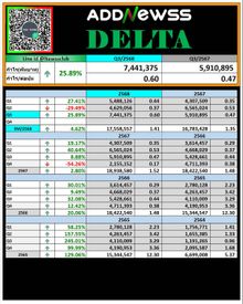 | DELTA | 28/04/25 | 82.00 | (#TH) DELTA โค้งแรกปั๊มกำไร 5.4 พันล. ดาต้าเซ็นเตอร์ Ai โตแข็งแกร่ง |