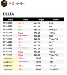 | DELTA | 08/10/25 | 189.50 | (#TH) เคล็ดลงทุนหุ้นอิเล็ก HANA DELTA เด่น |