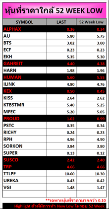 | หลักทรัพย์ | ข่าววันที่ | ราคาก่อนข่าวออก | (แหล่งข่าว) หัวข้อข่าว |