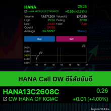 | HANA | 08/10/25 | 24.80 | (#TH) เคล็ดลงทุนหุ้นอิเล็ก HANA DELTA เด่น |