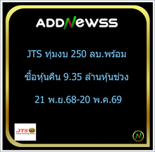 | JTS | 10/04/25 | 29.75 | (#KH) JTS สัญญาณดี เพิ่มดอกหุ้นกู้ เลื่อนชำระหนี้ |