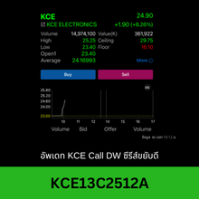 | KCE | 07/08/25 | 24.70 | (#TH) KCE ร่วมปั้นไทยฮับอิเล็ก เชื่อรอดภาษีชิ้นส่วน ทรัมป์ |