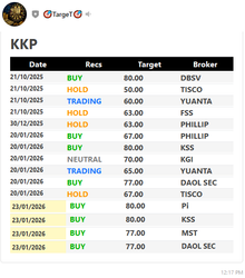| KKP | 22/10/25 | 66.25 | (#TH) แบงก์ Q3 กำไรเกินคาด TTB KKP มีอัพไซด์ |