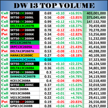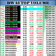 | Symbol | Last | Chg | %Chg | Hi | Low | Volume | Value | Date | Time | ☰ |