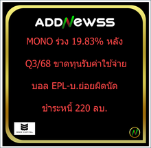 | MONO | 27/11/24 | 2.22 | (#KH) MONO พุ่งกระฉูด! รับกำไรพรีเมียร์ลีก |