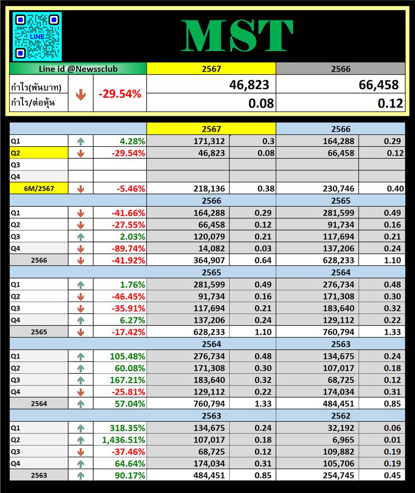 | MST | 29/01/24 | 10.70 | (#KH) MST กำไรปี 66 แตะ 365 ล้าน รายได้ฯ ลดตามวอลุ่มตลาด |