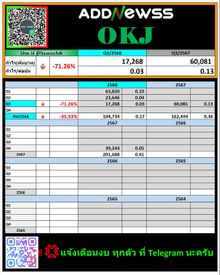 | OKJ | 10/02/25 | 10.90 | (#KH) OKJ รูดติดฟลอร์ ผิดหวังงบ Q4/67 |