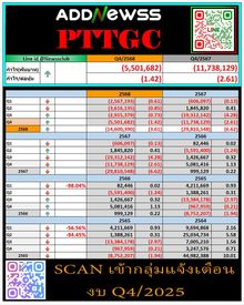 | PTTGC | 22/10/25 | 23.60 | (#KH) PTTGC ส่งสัญญาณงบ Q3 ฟื้น ขาดทุนลดลงเหลือ 2.7 พันล้าน |